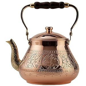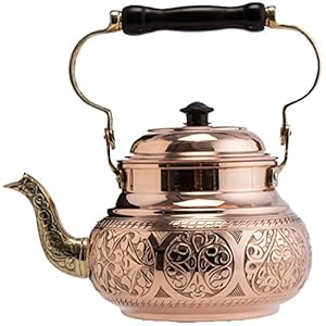 DEMMEX Handmade Heavy Gauge 1mm Thick Natural Turkish Copper Engraved Tea Pot Kettle Stovetop Teapot, LARGE 3.1 Qt – 2…