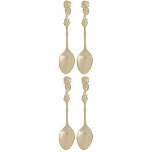 HIC Demi Spoon Set, Rose Design, Gold Plated Stainless Steel, Set of 4