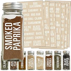 Talented Kitchen 134 Spice Jar Labels Preprinted: 134 White All Caps Spice Names + Numbers. White Letters on Clear…