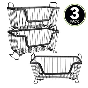 LOTTS Stackable Metal Storage Organizer Bin Basket with Handles, Open Front for Kitchen Cabinets, Pantry, Closets…