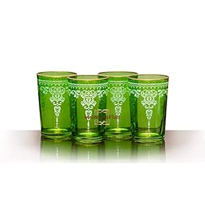 Moroccan Morjana Relief Tea Glasses – Set of 4 (Green)