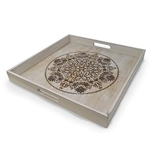Decorative Wooden Serving Tray With Engraved Art, Ottoman Breakfast Tray For Carrying Drinks Letters Mail, 15.75 x 15.75…