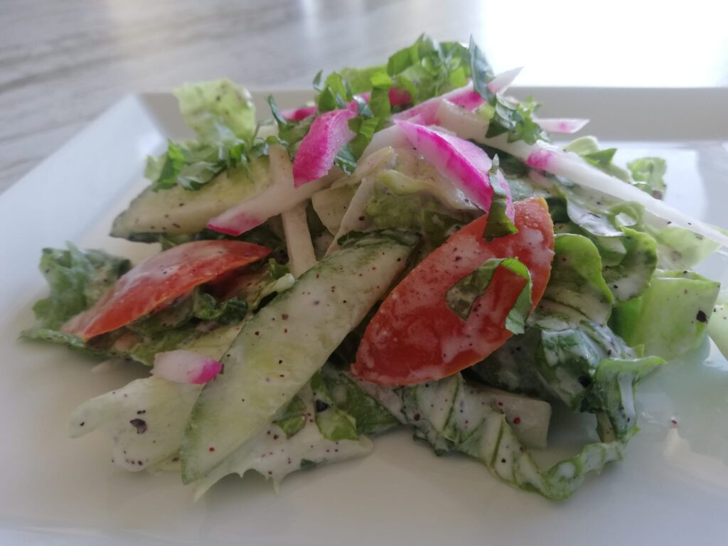 This Iraqi Yoghurt Salad recipe is a fresh green salad infused and smothered with a light yoghurt dressing. It’s cooling and refreshing in the summer and pairs well with grilled meat or fish.
