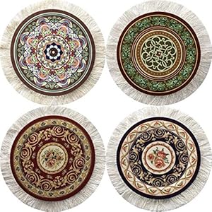 Set of 4 Round Coasters – Rug Table Drink Holders – Oriental Design Fabric Elegant Carpets (Set-2)
