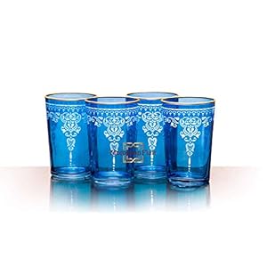 Moroccan Morjana Relief Tea Glasses – Set of 4 (Blue)