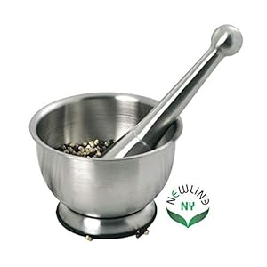 NewlineNY Stainless Steel Hand Masher & Bowl, Mortar and Pestle Set