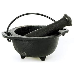 New Age Incense Cast Iron Cauldron Mortar and Pestle Set