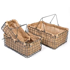 SLPR Metal Wire Storage Basket with Jute Lining (Set of 3) | Decorative Baskets for Kitchen Bathroom Shelves