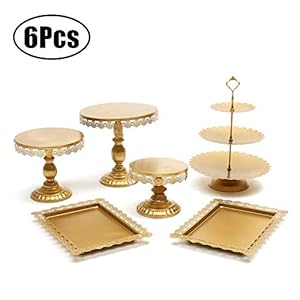 Set of 6 Pieces Cake Stands Iron Gold Cupcake...