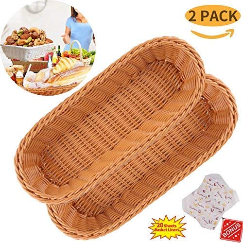 Includes: 2 Pack Brown Woven Bread Baskets.