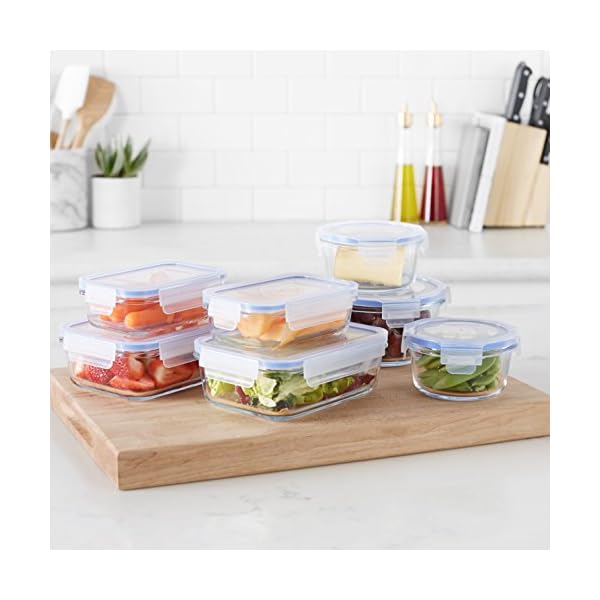 - Set includes 14 borosilicate glass bases and 14 BPA-free plastic lids