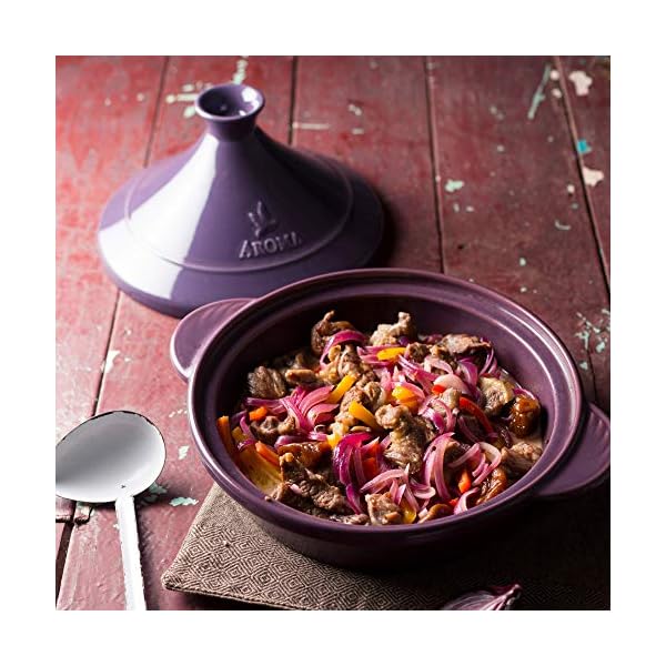 Unique lid contour creates circulating moisture and seals in flavor for Moroccan lemon chicken, lamb tagine, beef tagine vegetarian tagine and a lot more.