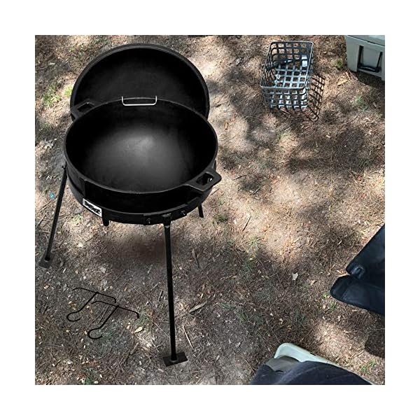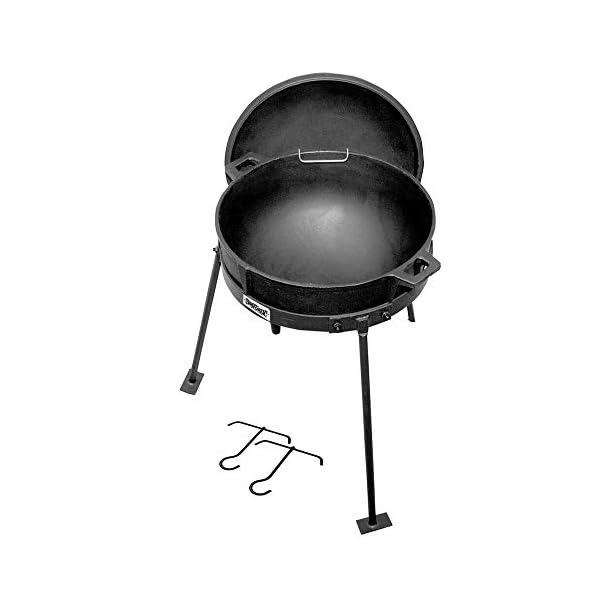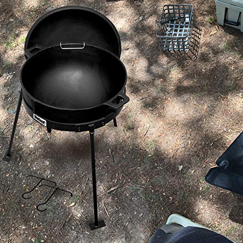 Savor southern comfort food with Bayou Classic 5-gal Jambalaya Pot. Heavy-gauge cast iron distributes heat evenly for slow cooking classic New Orleans jambalaya, beans & rice, chili, beef stew, and gumbo. This seasoned Jambalaya Pot features reinforced tripod legs and includes a cast iron lid, steel tripod stand, and two lift hooks. Unique feature is a stainless built-in Lid Holder for securely hanging on side of pot when stirring and serving. Perfect for large event cooking; tailgating, festivals, reunions, church socials, and company cookouts. Compliment with Bayou Classic Outdoor Gas Cookers, Stainless Stir Spoon, and Stir Paddle.
