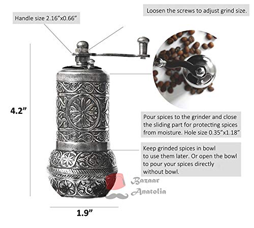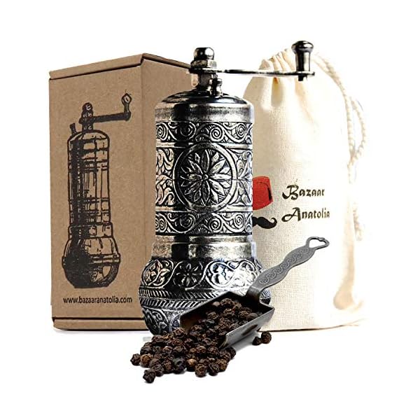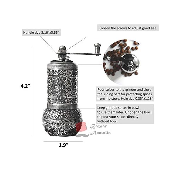 • DURABLE with complete metal body and mechanish. There is no plastic parts on Bazaar Anatolia Spice Grinder