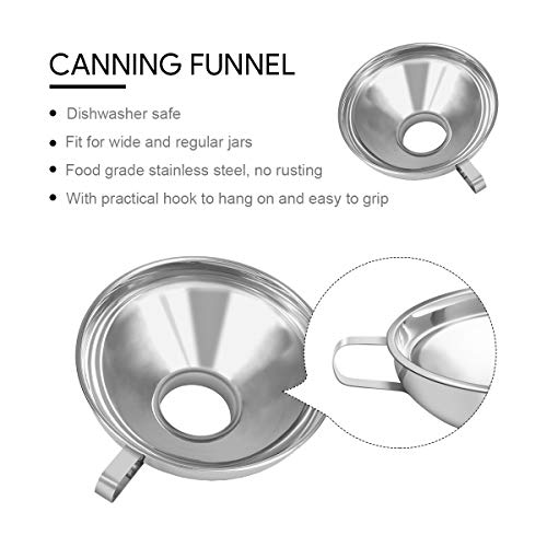 Stainless steel mason jar funnel canning funnel with practical hook to hang on the wall, convenient for you to grip, better than toxic plastic funnel that harmful to your health