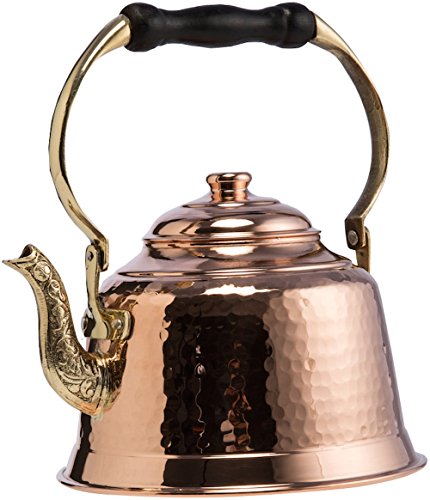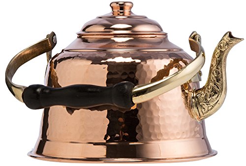 CopperBull Heavy Gauge Copper Teapot. Copper Thickness : **1mm** . Check under the pot for DEMMEX logo to prevent copper plated imitations. Capacity: 1.6 Quarts Lined with lead free tin for safety & ease of cleaning. 100% Handmad in Turkey. Suitable for gas/electric stoves. (Not for induction). Search B07PDSKJL4 on Amazon for the LARGER version.