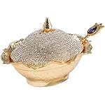 Swarovski Crystal Coated Sugar Candy Delight Bowl;Capacity:10 Oz. Weight:10 Oz. Height:4 Length:6;Material : Brass & Swarovski Crystals;Includes 1 authentic gold colored sugar spoon with colored stone! (Stone color may vary)!;For Bigger Version Search Product : B017RS5APM