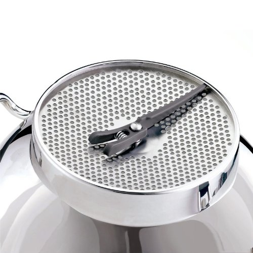 For smart and tidy baking and cooking, Cuisipro’s deluxe food mill makes a valuable player in any home chef’s starting lineup. The extra-large round vessel fits securely on top of another bowl or pot with a plastic-coated roll bar on one side and a long, non-slip handle on the other. To operate, simply place the fruit or vegetable to be pureed inside, and turn the knob on top. As the food moves through the straining disk, unwanted parts like skins and seeds get left behind and a handy plastic scraper underneath sweeps the puree down. Three interchangeable disks in 2mm, 3mm, and 4mm sizes allow the chef to choose a finer or coarser consistency. Crafted of 18/10 stainless steel, the food mill disassembles for cleaning. It is backed by Cuisipro’s 25-year warranty. –Kara Karll