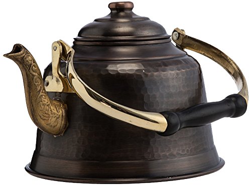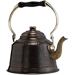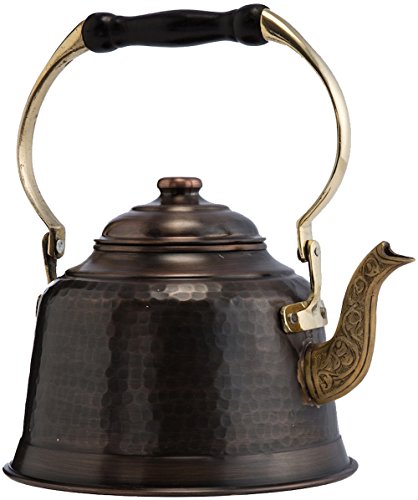 DEMMEX Heavy Gauge 1mm Thick Hammered Copper Tea Pot Kettle Stovetop Teapot, 1.6Qts, (Antiqued Copper)