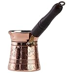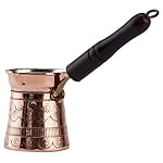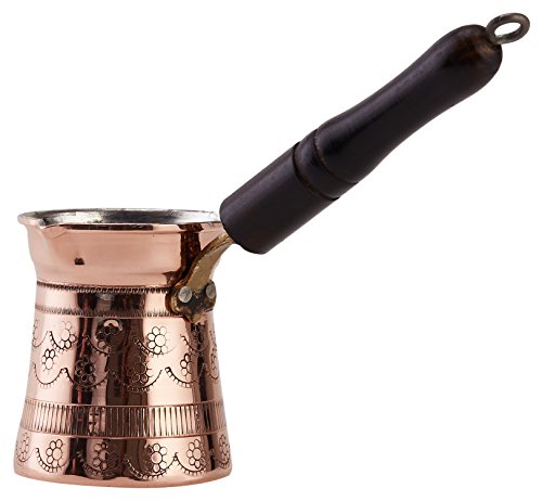 DEMMEX is a Registered US & Turkish Brand. Amazon Best Selling COPPERBULL Coffee Pots are manufactured by DEMMEX,too. We have a large selection of Turkish coffee pots that are made by experienced artisans in Turkey. All of our Turkish coffee makers are made with copper and are 100% lead free. Copper is the choice of the gourmet professionals for cooking. It is considered the finest practical conductor of heat. Its primary advantage is that it requires only low to moderate heat to obtain the best results. This is why copper is the perfect material to use for Turkish coffee pots called “cezve” (pronounced “ jezz-va” ). With little care, your coffee maker can provide you with many years of service and pleasure. Each wood handle on our pots are turned on a lathe and individually stained (color may vary) and attached to our pots with a brass connectors to ensure leak free use for many years. We also make sure that handles do not wobble and are securely attached. Finally our pots, like all copper cookware, are coated with tin inside which is a healthy metal that is required by our bodies. However, tin is not cheap and some manufacturers mix lead with it. We use only 100% lead free tin inside our pots. Each pot is individually wrapped with cellophane to prevent oxidation before shipment so that it is shiny as our pictures when you get it. CARE : You can use the commercially available cleaning materials for copper or tin to clean your coffee pot if you need to, but remember it’s OK to let your pot turn dark. It adds character! Outside: Non abrasive pad or sponge is the best. Inside: Tin is a soft metal and should be cleaned with a dishcloth or sponge only. Never use abrasive cleaning materials like scouring pads or metal scrapers on your coffee pot. Rinse thoroughly after washing and dry to avoid spotting.