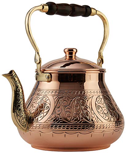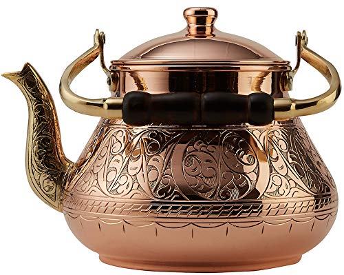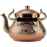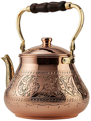 Heavy gauge 1mm thick handmade copper teapot. Made with famous Turkish Copper in Gaziantep City of Turkey by craftsmen with a century of experience in copper industry. LARGE CAPACITY : 3.1 Qt. Diameter:7.7″ Height : 6.9″. Weight : 2.75lb This teapot’s body is completely solid hammered copper and nonreactive food safe tin lining on the inside.. Not lacquered. So it will develop a natural patina, as real copper should.You can be assured this will last for many generations unlike other thin imitations found on Amazon. The DEMMEX Teapot is made of the thickest copper available. Thus, it has maximum durability. GUARANTEED 100% COPPER – AUTHENTICITY TEST : After receiving the teapot, if for any reason you suspect of it being not copper, drill a hole anywhere on the teapot’s body and check the hole. You will see 1 mm thick copper along the hole. Nothing else. We will send you a replacement immediately if you decide to do this test and send us the photos afterwards. (This test should be done within 7 days of receiving the item to avoid abuse of the replacement guarantee).