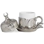 1 Inner Porcelain Cup, 1 Metal Cup Holder, 1 Saucer, 1 Lid.