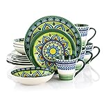 ◈A STUNNING ACCENT TO YOUR TABLE◈ The Elama Zen Green Mozaik 16 Piece Stoneware Dinnerware Set in Green and Multicolor