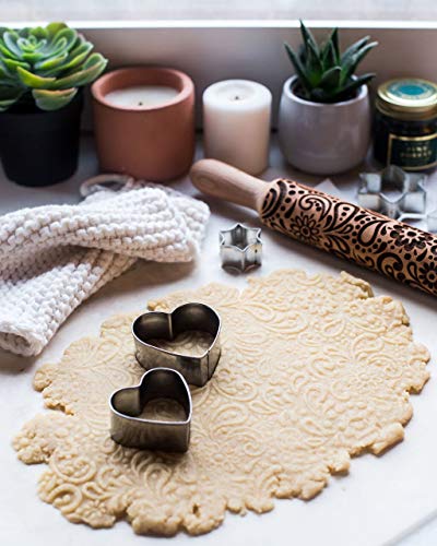 easy to create by using this engraved rolling pin on rolled-out cookie