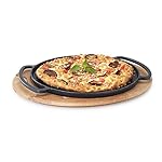 USER FRIENDLY & FUNCTIONAL: In addition to cast iron’s superior heat retention and even heat distribution properties, Essenso’s 3-layer enameled cast iron pizza pan doesn’t require seasoning, its impermeable surface can be used with acidic foods (such as tomatoes), and it’s resistant to cracking and rusting. Easily tolerates up to 500F in the oven. Big handles for easy handling.
