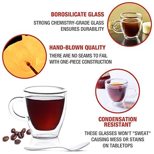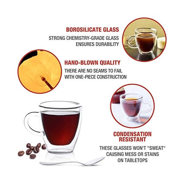 A GORGEOUS DOUBLE-WALLED ESPRESSO GLASS: These stunning single-shot espresso glasses really show off the precious liquid inside them. The double-walled design keeps the black gold hot longer and gives it a floating optical effect at the same time!