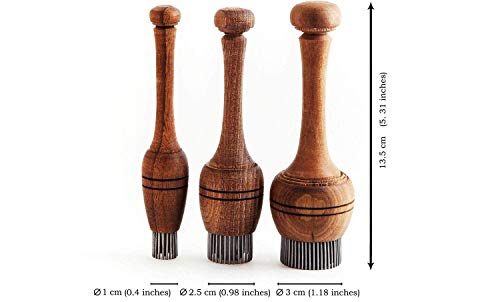- Dimensions: the smallest one is 0.4″ (1 cm) in diameter; the biggest one 1.2″ (3 cm); the medium one 1″ (2.5 cm). All of them are 5.31″ (13.5 cm) long