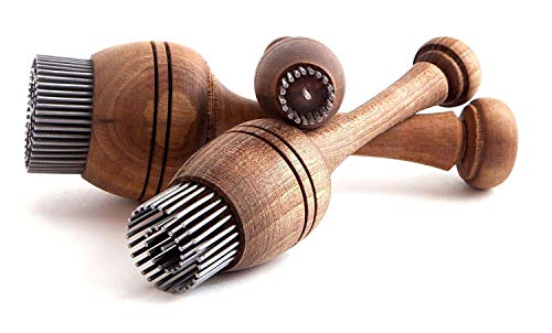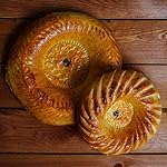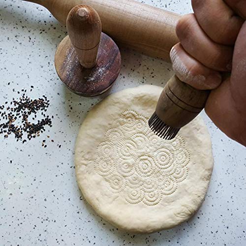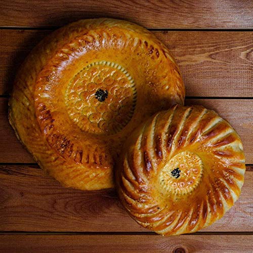 The patterns are made with a traditional Uzbek bread stamp, locally called a “chekich.” This tool is used by every professional baker in Uzbekistan to imprint the gorgeous designs, but it is super simple to use for anyone who wants to make impressive looking flat breads and pastry without necessarily being a professional baker.