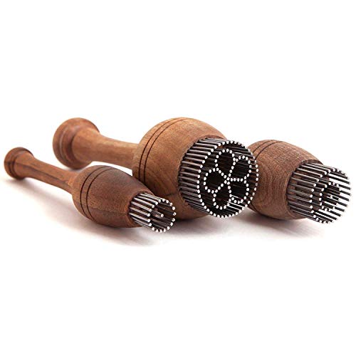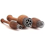 A three-piece set of original, hand-made Uzbek bread stamps called “chekich“, traditionally used by Central Asian bakers (learn more below).