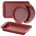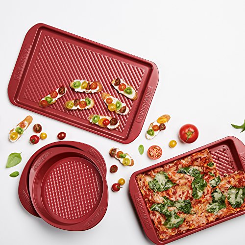 Say goodbye to dull and uninspiring bakeware with the Farberware color vive(tm) 4-Piece nonstick bakeware set. Boasting a vibrant, metallic-colored nonstick coating, this high-quality bakeware delivers glitzy great looks along with durable, warp-resistant steel construction. Perfect for a batch of chewy fudge walnut brownies, a double-layered lemon Lavender and rosemary cake with vanilla bean frosting or a zesty Florentine spaghetti bake, the high-quality nonstick provides long-lasting food release with the easiest of cleanups.