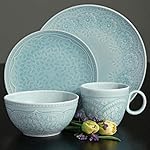 The highly detailed Gibson Elite Alemany 16 Piece Dinnerware Set will create an aura of elegance in your dining room. This gorgeous fine ceramic set includes four dinner plates, four dessert plates, four bowls and four mugs. Get your set today!