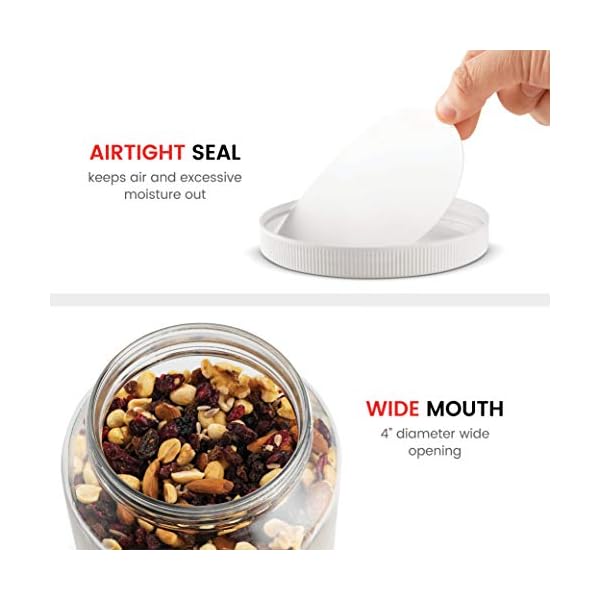 Wide Mouth: With a diameter of 4”, our wide mouth jars allow you to easily fill them with larger fruits and vegetables like zucchini, cucumbers, peppers, and more. The wide mouth also makes it convenient to reach in the half gallon jar to clean it out thoroughly.