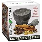 A gourmet chef keeps a mortar and pestle on the counter to grind spices, smash nuts and seeds, make condiments and sauces, and of course, create glorious pesto or salsa. Use this HealthSmart Granite Mortar and Pestle during meal prep and you’ll soon realize that releasing the fresh flavors and oils of the spices you use in cooking makes a big difference in the taste of the food! Our mortar and pestle is constructed of heavyweight solid granite stone with a rough textured interior for efficient grinding. When visitors see a quality mortar and pestle in your kitchen, they know you’re a connoisseur that takes cooking seriously. When your mortar and pestle arrives, please take the time to season it properly. To season, place one-quarter cup of white rice in the mortar bowl and grind to powder using the pestle. Check the powder for any granite debris, and if you find any, repeat this seasoning process. Properly seasoning your mortar and pestle will remove manufacturing impurities. Once properly seasoned, clean your mortar and pestle by rinsing with hot water and cleaning with a brush. Do not use soap to clean, the granite will absorb the soapy residue and in turn transfer that to your food. Excellent idea for the newlyweds, a housewarming idea, or any serious cook on your list. Heavyweight construction of solid granite stone weighs approx. 5 pounds. Mortar measures 5-1/8-inch diameter x 3-1/4-inch, with 5-1/8-inch pestle. Limited Lifetime Warranty.
