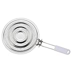 Made from perforated stainless steel with stay-cool plastic handle, HIC’s Heat Diffuser absorbs and diffuses heat evenly for better energy efficiency. It’s durable, lightweight and sturdy, and it won’t scratch surfaces or rust. The longer handle keeps hands safely away from heat and is easily removed for compact storage. Measures 15.75-inches long, and 8.25-inches in diameter. Dishwasher safe for easy cleanup.