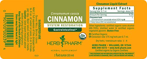 Herb Pharm Certified Organic Cinnamon Liquid Extract for Cardiovascular and Circulatory Support – 1 Ounce