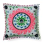 This is a Hand Embroidered 100% Cotton Square Shape Suzani Cushion Cover. Front Side Every Cushion Cover Has Different Color Base With Multi Color Embroidered Floral Design Pattern. Back Side Cushion Cover Has Solid Color Pattern. Cushion Cover Has One Zip Closure at the Back Side. Around Cushion Cover Has Decorative Pom Pom Lace. Pillow insert isn’t included. You Would possibly Use Multi Decor As Cushion Cover, Floor Pillow, Bed Pillowcase, Sofa Sham and so forth. They’re widely used for home decoration in a very stylish way. This beautiful pillow cushion cover will add warmth style and elegance to any room in your house. They’re Soft Smooth and Stylish in appearance.