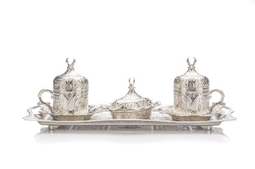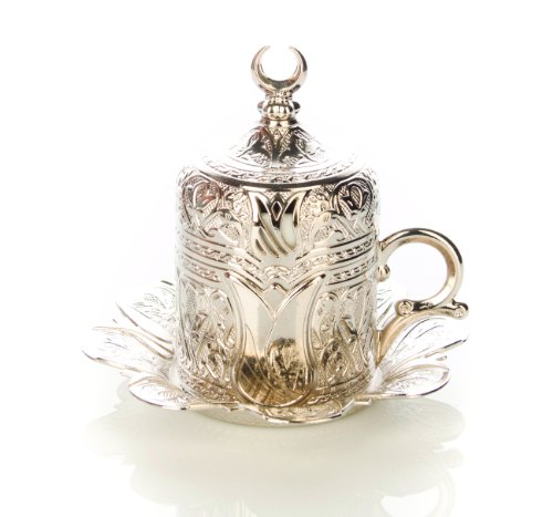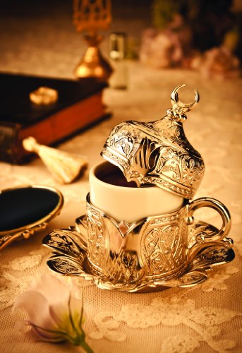 LaModaHome Espresso Coffee Cup with Saucer and Lid Set of 6, Porcelain Turkish Arabic Greek Coffee Set, Coffee Cup for…