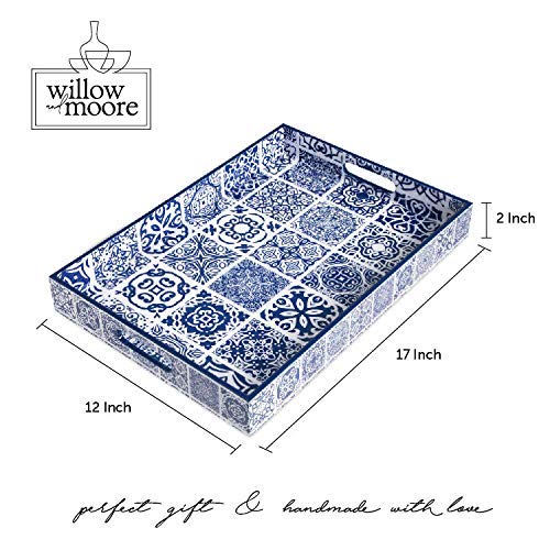 KITCHEN SERVING TRAY WITH HANDLES FOR ALL OCCASSIONS: This stylish lacquered rectangular wood tray for coffee table also serves as a decorative coffee table tray decor, a coffee table tray centrepiece or coffee table trays for living room.It looks beautiful on the dining room table or hutch,tray for your tea set or even a couch tray. Decorative tray for coffee table is made of MDF with glossy finish and cut out handles. Just another example of the luxuriousness brought to you by Willow & Moore.