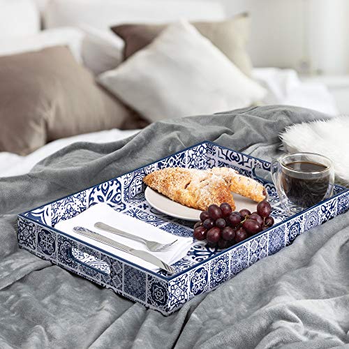 PROTECTION FOR LIFE: Contemporary breakfast tray requires no assembly and has pads or grips on the bottom to help preserve and protect your counter tops, tables, and other surfaces. Well made, built with pride to be durable yet light weight trays, these decorative trays will serve you, and others, for years to come. Easy to clean, you simply wipe the food tray with a soft warm cloth. Great Mother’s day present. 100% Customer Dedication – If you aren’t happy, we’ll fix it! Our #1 priority is you.