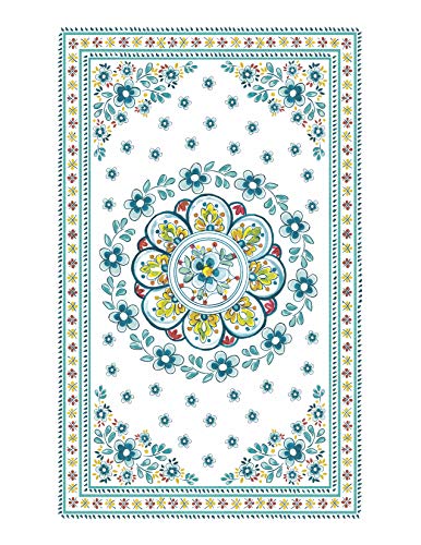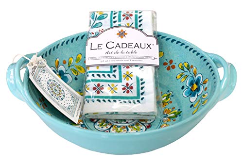 Le Cadeaux Madrid Turquoise Melamine 9.25″ Salad Bowl with Handles and Tea Towel Set