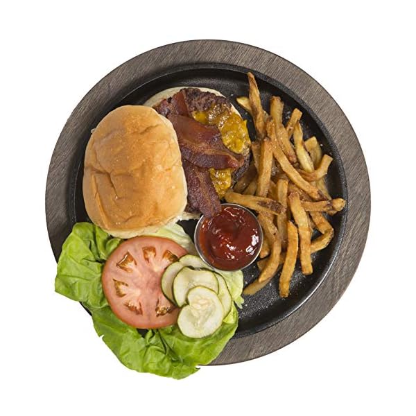 From a burger and fries combo, to sizzling fajitas, the Lodge 9.25 inch Cast Iron Round Handleless Serving Griddle is the perfect to serve a meal with lasting impression. Seasoned with oil for a natural easy-release finish that improves with use, this griddle is at home in the oven, on the stove, on the grill or over the campfire. Great for induction cooktops! Cast iron is unparalleled in heat retention and even heating, making it brutally tough for decades of cooking. Easy care: hand wash, dry, rub with cooking oil.