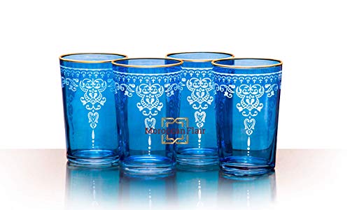 Moroccan Tea Glasses: In Morocco, the rituals of preparing, serving, and drinking tea with friends and family are treasured moments with social relevance. Given the cultural significance tea has for Moroccan families, the selection of tea accessories is particularly important. Our gorgeous tea glasses are made by skilled Moroccan artisans who pass their skills from generation to generation. Their bold colors and intricate golden designs will elevate your table and add elegance to any beverage service. They measure 3.75 by 2.5 inches, and hold eight ounces each. Not just for tea, use them for anything from water to juice, or pop in a votive to create a stunning centerpiece.Fill with colorful flowers to make stunning table decoration! Do not use in the microwave; hand wash only.