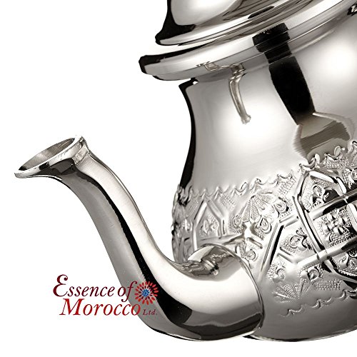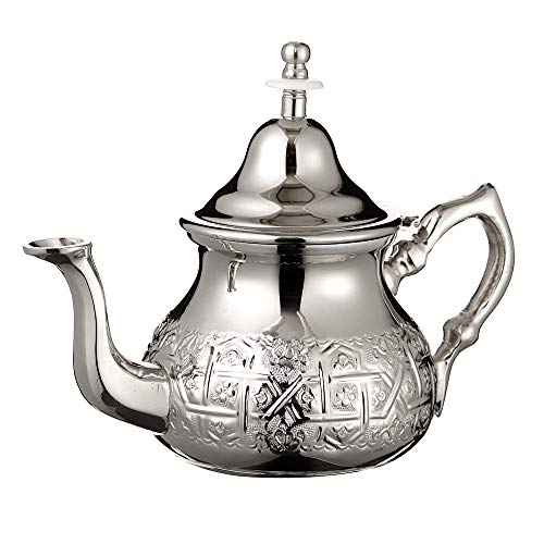 Large Moroccan teapot with take care of cover and integrated filter out, traditional authentic with a classical engraved Moroccan arabesque design. Hand-crafted in Morocco with silver Maillechort. Best possible for Moroccan mint tea or your favourite infusions. Includes complimentary hand embroidered cotton take care of cover with sabra silk tassel. All our teapots have an integrated traditional Moroccan filter out (about 7 holes) which is located between the body and spout. The teapots are food grade and feature been designed to assist keep tea hot. Can be utilized on a stove. Hand-wash simplest. Dry in an instant after washing. Approximate Capacity: 800 ML., about 7 tea glasses. Approximate height: 20 cm / 8 in. Hand-wash simplest.
