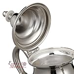 Large Moroccan teapot with take care of cover and integrated filter out, traditional authentic with a classical engraved Moroccan arabesque design. Hand-crafted in Morocco with silver Maillechort.