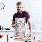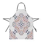 Moslion Mandala Apron 31×27 Inch Aztec Blue Orange Vintage Paisley Ethnic Moroccan Flower Kitchen Chef Waitress Cook Aprons Bib with Adjustable Neck for Women Men Girls