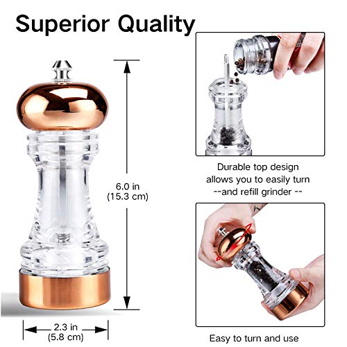 The clear aclrylic shaker body highlights the level of your spice and is easy to refill, simple remove the pepper grinder top and refill with your choice of peppercorns.